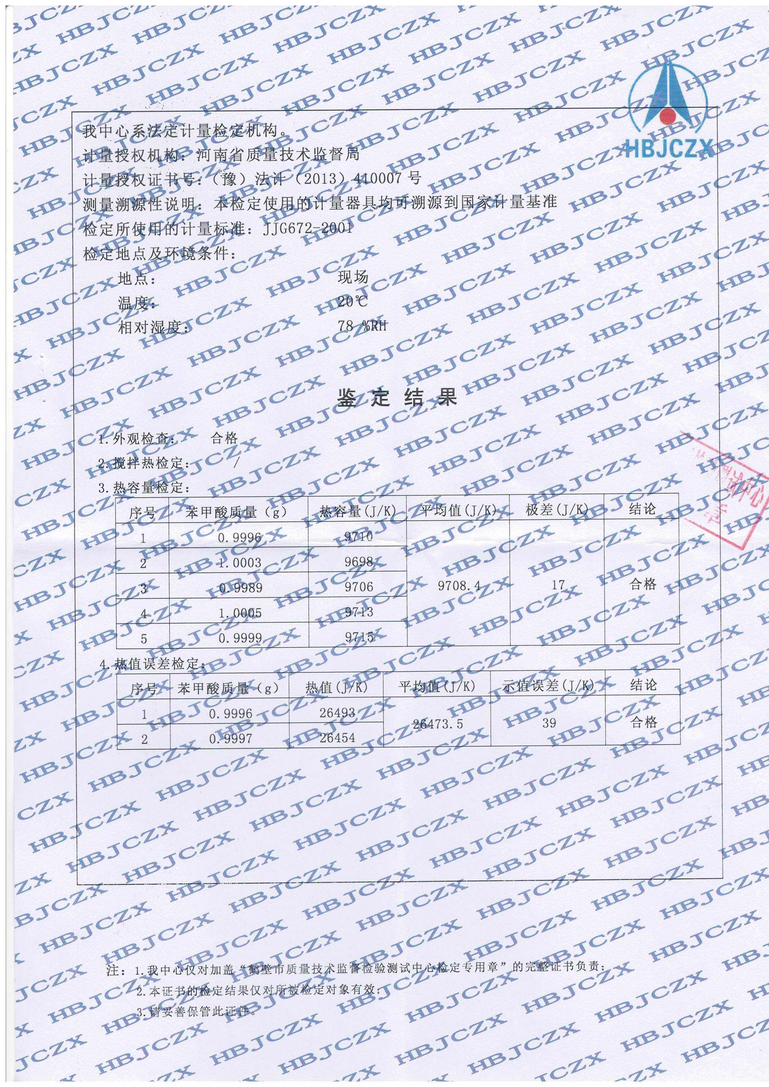 鶴壁市華諾電子科技有限公司是一家專業(yè)研制、生產(chǎn)煤質(zhì)采制樣分析儀器儀表的高新技術(shù)企業(yè)。在社會經(jīng)濟(jì)高度發(fā)達(dá)的今天,我公司長期堅(jiān)持“質(zhì)量產(chǎn)生效益,質(zhì)量贏得市場”的理念矢志不移。如今公司在質(zhì)量管理方面已經(jīng)形成了一套完整的體系,上周經(jīng)過公司相關(guān)部門討論,領(lǐng)導(dǎo)決定為出廠的每臺量熱儀辦理“身份證”,即生產(chǎn)的任何型號的量熱儀都要通過鶴壁市質(zhì)量技術(shù)檢測中心檢定并且合格才能出廠運(yùn)送給客戶使用,鶴壁市質(zhì)量技術(shù)檢測中心會為接受檢定的量熱儀出具檢定證書,上面會詳細(xì)的標(biāo)出量熱儀的型號、出廠編號、檢定結(jié)果等。鶴壁市華諾電子科技有限公司要讓每一位客戶買的放心、用的舒心。