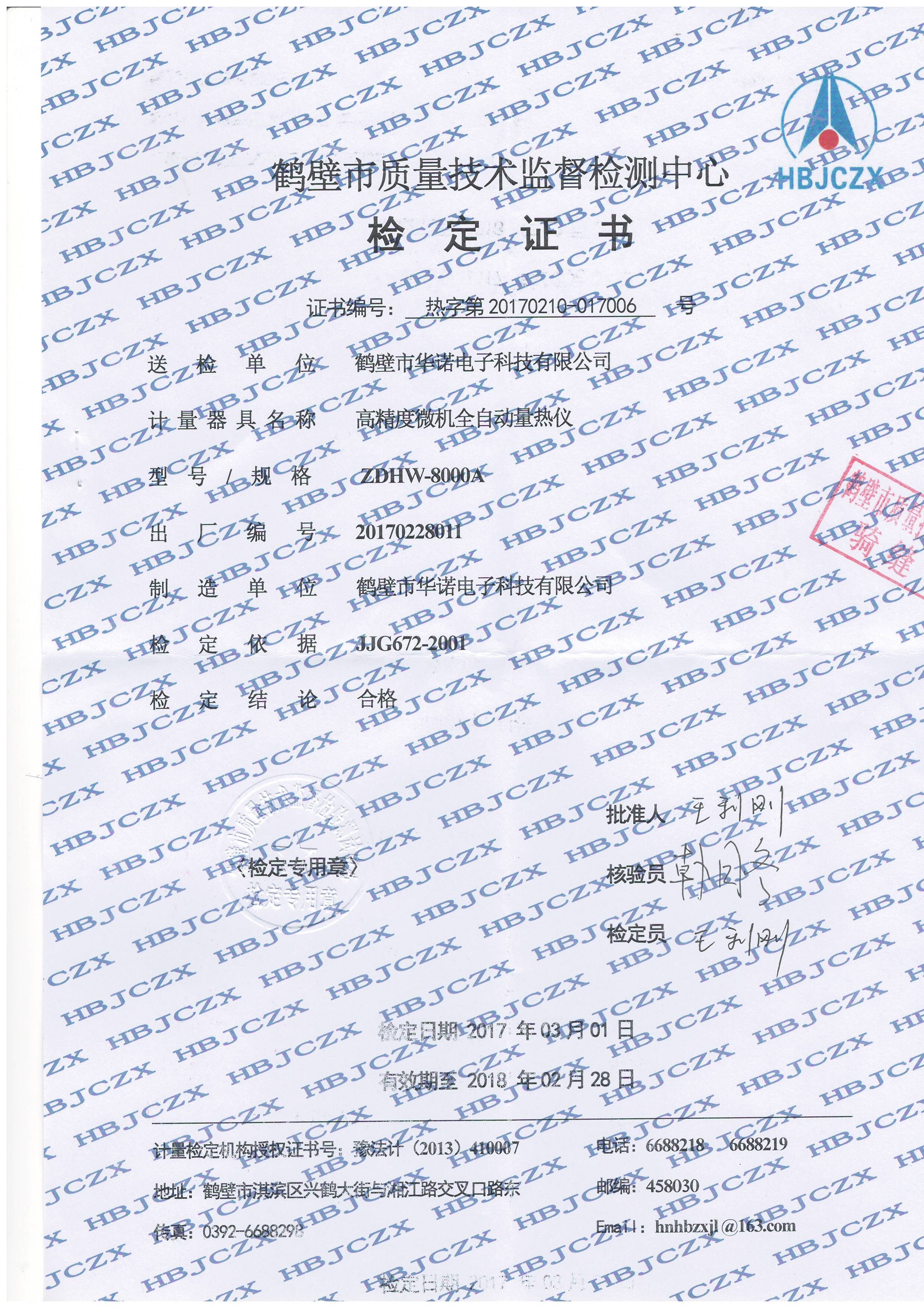 注:我公司每臺(tái)量熱儀都會(huì)經(jīng)過(guò)鶴壁市質(zhì)量技術(shù)監(jiān)督局檢測(cè)并出具質(zhì)量檢測(cè)報(bào)告,請(qǐng)您放心使用!