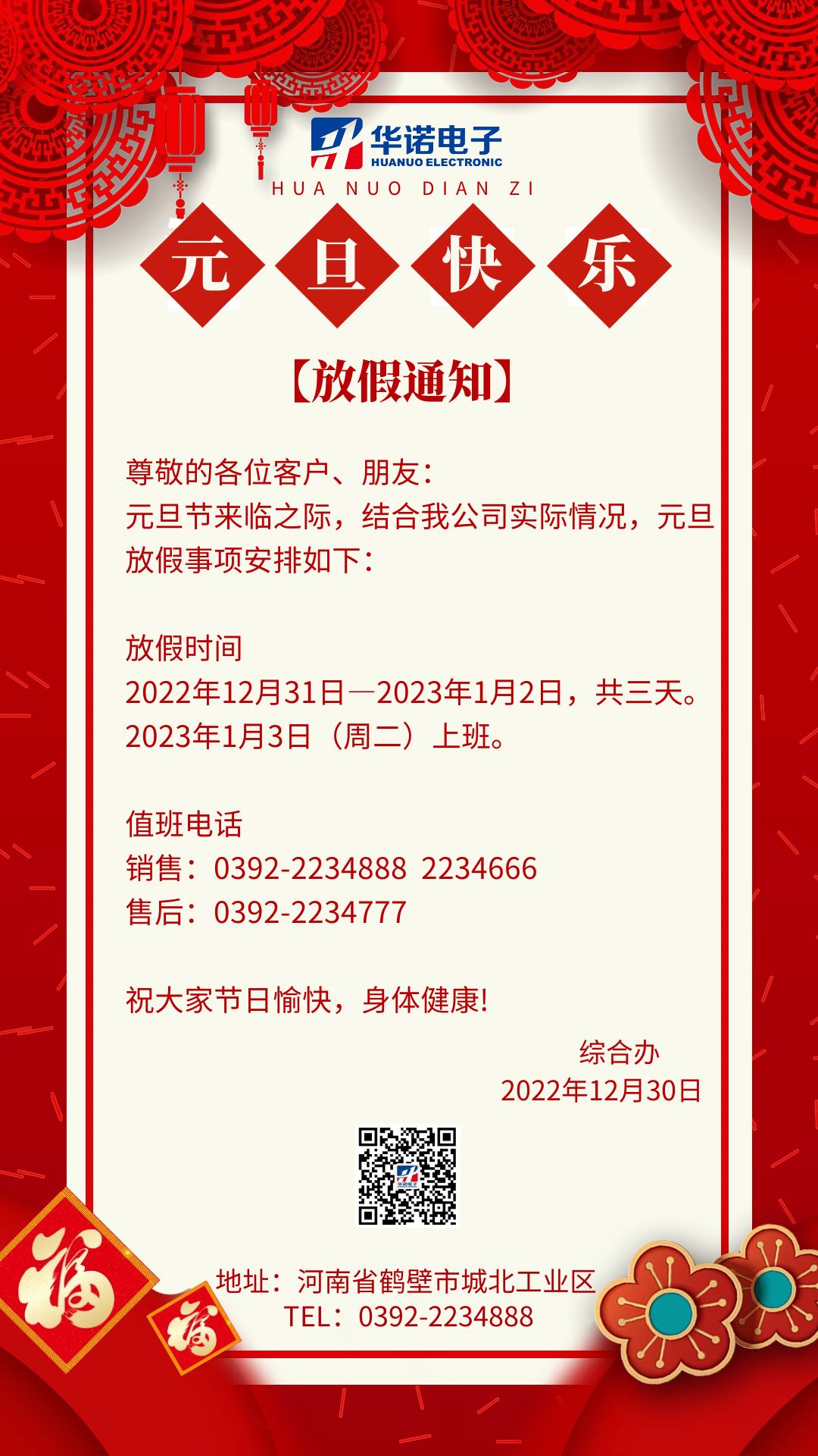 【華諾電子 | 放假通知】華諾煤檢儀器 元旦放假通知!