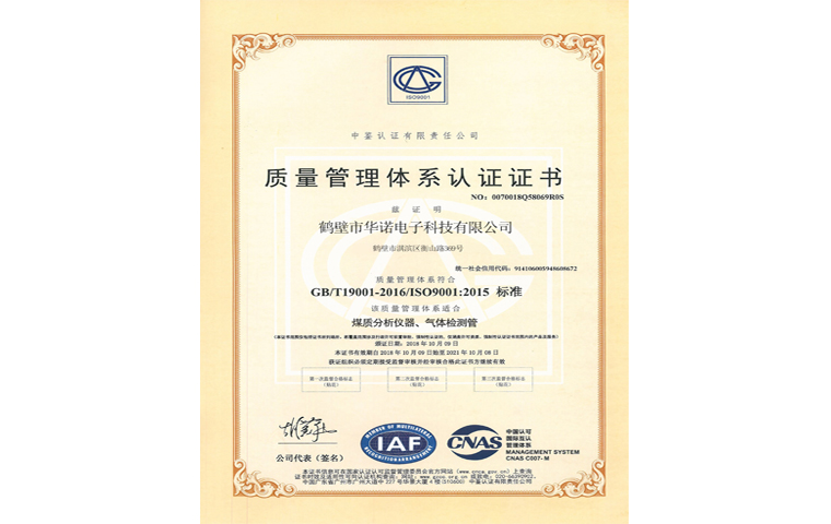 質(zhì)量管理體系認(rèn)證證書