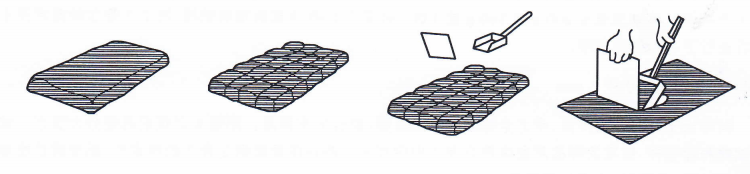 4.2.4棋盤法:適用于鋸屑和其他能用鏟勺處理的小顆粒樣品。將全部樣品置于清潔并堅(jiān)硬的表面上并用鏟勺混勻。用鏟勺將樣品散布成長方形堆,堆的厚度不超過物料標(biāo)稱最大粒度的3倍,用鏟勺在長方形堆的表面上輕輕劃線,分割出不少于20個部分。用鏟勺和擋板從20個部分中的每一部分取子樣,每次取樣鏟勺都插入到堆的底部。結(jié)合子樣到所需量的試樣。
